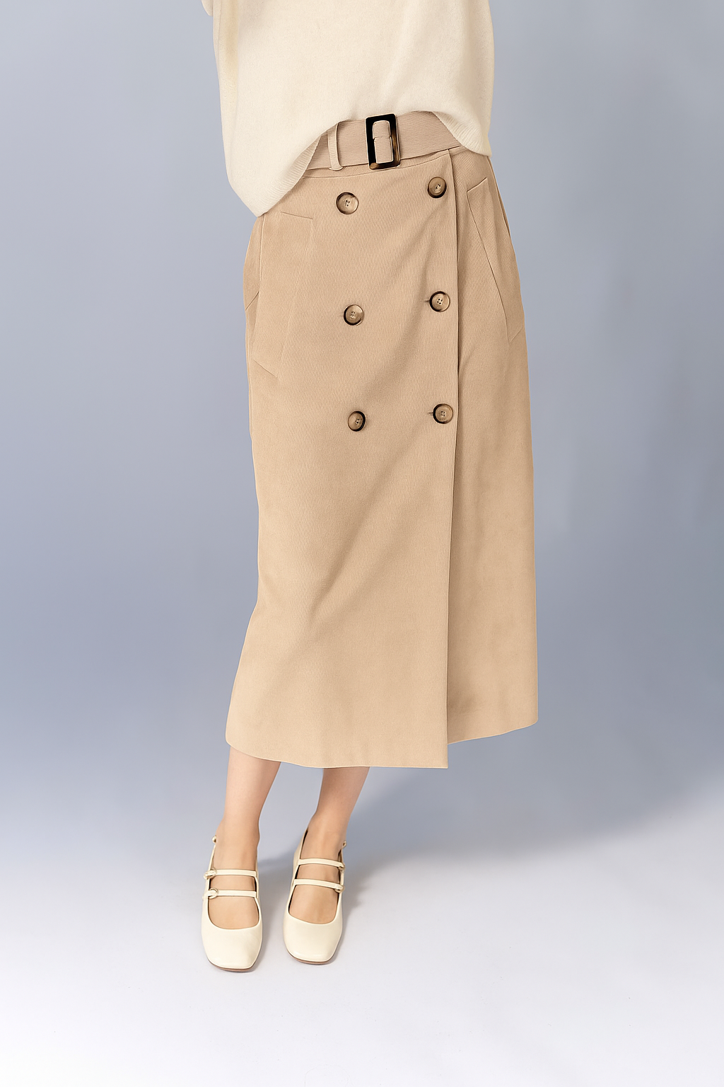 Rok knopen ribbel, beige